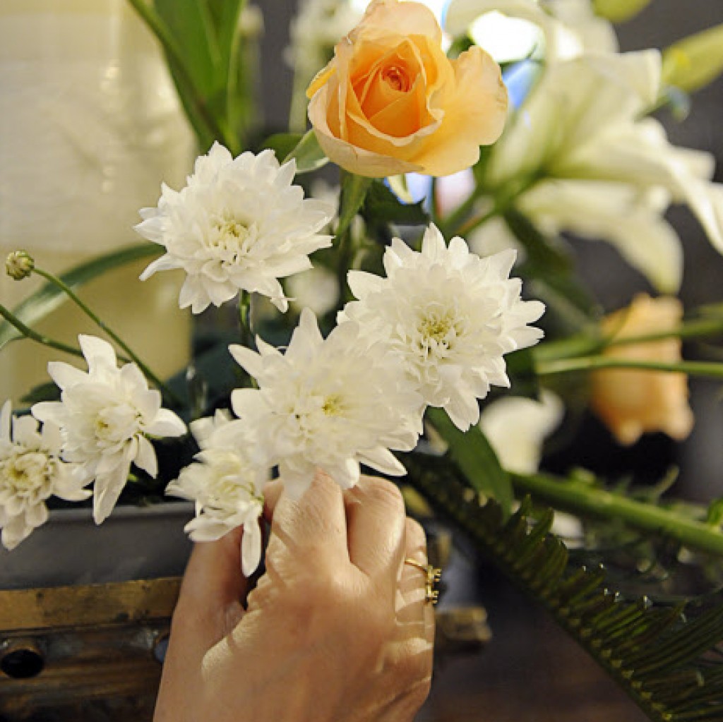 « C’est un service humble et utile, qui aide les gens à prier. Une église fleurie est aussi une église accueillante et vivante et le moyen de montrer aux gens qu’ils sont attendus et bienvenus. C’est un service enrichissant, qui rend attentive à la liturgie. On ne fleurit pas une église au gré de sa seule inspiration. Il y a des règles. On tient compte d’abord du calendrier ! Chaque fête et chaque temps a sa couleur ! La forme et la couleur des bouquets doivent s’harmoniser avec ce calendrier.