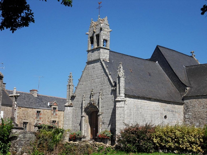 Située à l’intérieur du cimetière, cette chapelle de pardon fut achevée en 1604. Rectangulaire, présentant en façade Ouest un portail style renaissance retombant sur des pilastres, surmonté d’un clocheton renaissance et en façade Sud un portail ouvragé en plein cintre avec moulure et une fenêtre en arc plein cintre plus récente (19° siècle). La façade Est est percée d’une autre fenêtre en arc légèrement brisé et à remplage.