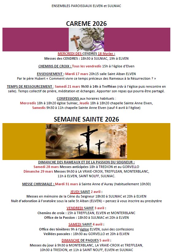 Tous les horaires CAREME et SEMAINE SAINTE